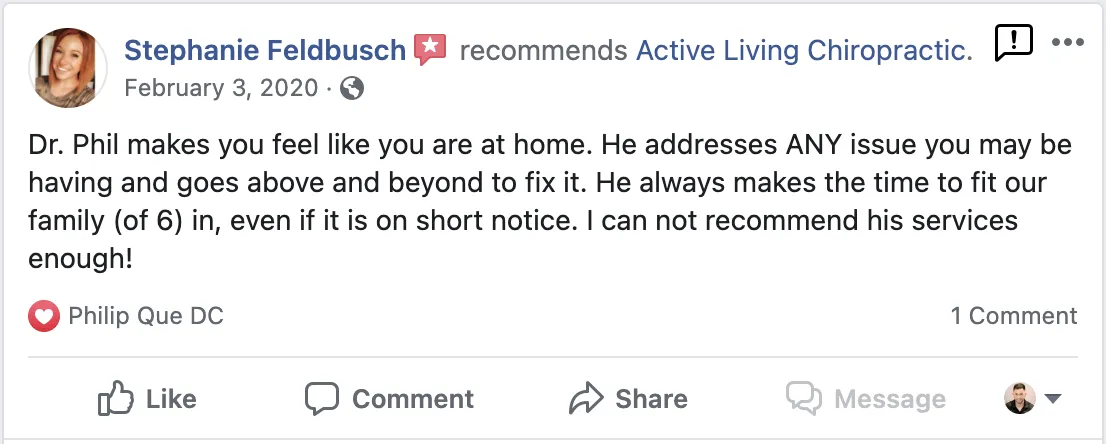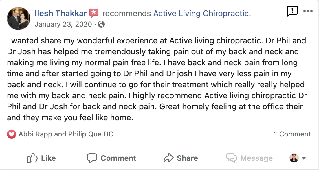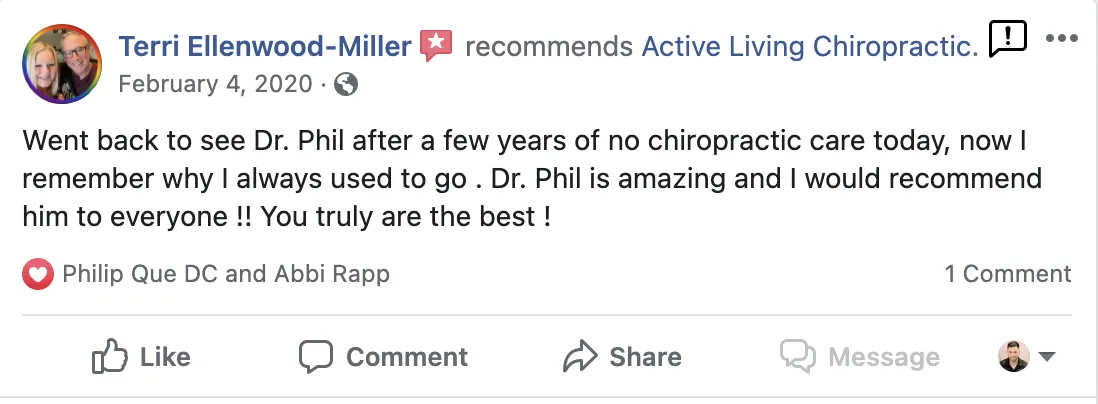 This week we are running a new patient special on Facebook. By submitting your information and calling to immediately schedule an appointment, you’ll receive a consultation, exam and report of findings for the special price of $47 ($250 Value!)